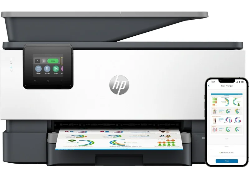 HP OfficeJet Pro 9120b to profesjonalna kolorowa drukarka atramentowa stworzona z myślą o firmach, które operują w wielu lokalizacjach i przyjęły hybrydowy model pracy. Oferowana przez renomowanego producenta drukarek HP, to urządzenie łączy w sobie najnowszą technologię, umożliwiając zarządzanie wielofunkcyjnym parkiem drukarek. To rozwiązanie, które zrewolucjonizuje pracę w każdej sieci. Urządzenie wielofunkcyjne HP OfficeJet Pro 9120b pozwala na drukowanie, skanowanie, kopiowanie oraz faksowanie, zapewniając kompleksowe możliwości, które spełnią potrzeby każdej firmy. Dzięki prostocie w wdrażaniu, integracji i konfiguracji floty drukarek, zarządzanie drukarkami w różnych lokalizacjach staje się łatwiejsze niż kiedykolwiek. Bezkompromisowa integracja w dowolnej sieci jest możliwa dzięki uniwersalnemu sterownikowi druku HP oraz językowi opisu strony. Najważniejsze zalety urządzenia to możliwość dostosowania floty drukarek oraz zarządzanie nią w dowolny sposób za pomocą zdalnego zarządzania i ulepszonej obsługi funkcji.