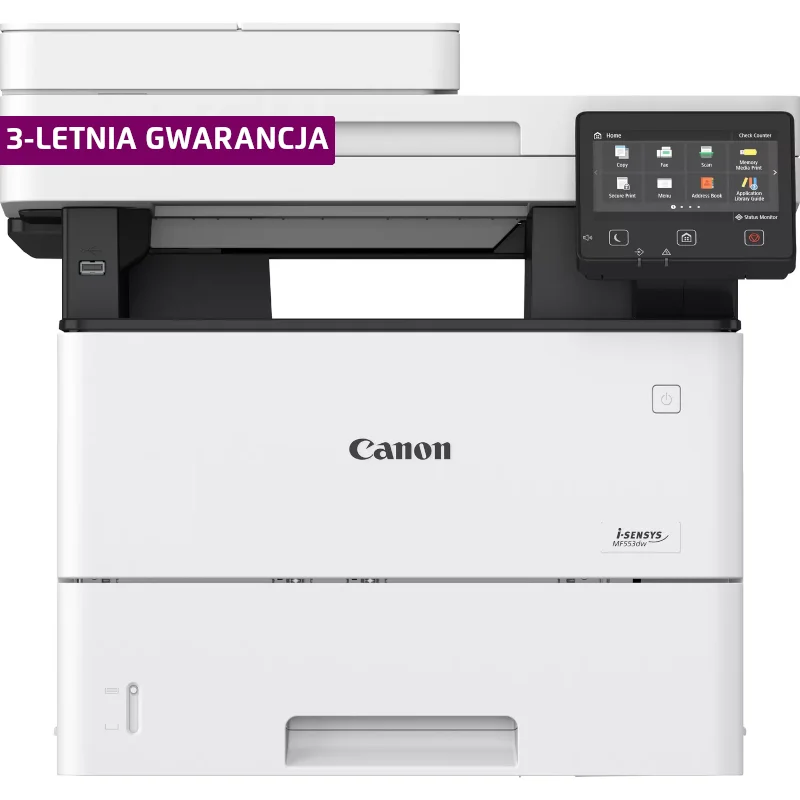 Canon i-SENSYS MF553dw to kompaktowa i wszechstronna drukarka laserowa, idealnie dostosowana do potrzeb nowoczesnego biura. Zaprojektowana z myślą o efektywności i wygodzie, umożliwia szybkie, wydajne drukowanie, skanowanie i faksowanie w jednym niewielkim urządzeniu. Niezwykle duża szybkość drukowania, osiągająca do 43 stron na minutę, sprawia, że drukowanie staje się błyskawiczne, a użytkownicy mogą szybko i efektywnie realizować zadania drukowania. Ponadto, możliwość drukowania ze smartfona lub tabletu dodaje wygody i elastyczności do codziennego użytkowania. Bezpieczeństwo dokumentów i urządzenia jest priorytetem Canon i-SENSYS MF553dw. Funkcje takie jak bezpieczny kod PIN oraz weryfikacja systemu przy uruchamianiu zapewniają solidną ochronę przed atakami z zewnątrz, co jest kluczowe w środowisku, gdzie bezpieczeństwo danych ma najwyższe znaczenie. Jednym z kluczowych atutów tej drukarki jest możliwość obsługi łączności z chmurą, co umożliwia natychmiastowe drukowanie i skanowanie z/do usług przechowywania w chmurze, takich jak Google Drive, Dropbox i OneDrive.