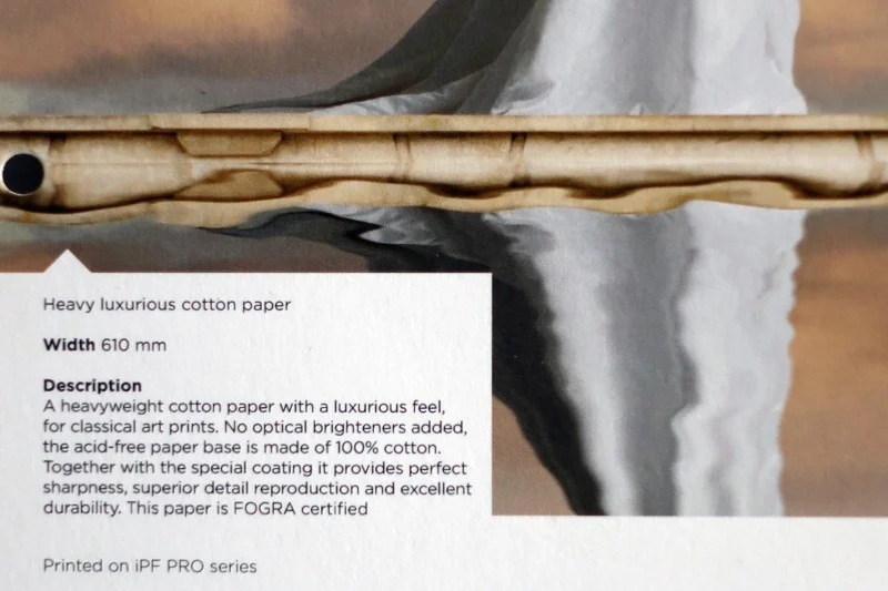 Gruby papier bawełniany o luksusowym wyglądzie, przeznaczony do klasycznych wydruków artystycznych. Nie zawiera wybielaczy optycznych, bezkwasowa baza papierowa wykonana jest w 100% z bawełny. W połączeniu ze specjalną powłoką zapewnia doskonałą ostrość, doskonałe odwzorowanie szczegółów i doskonałą trwałość. Papier ten posiada certyfikat FOGRA