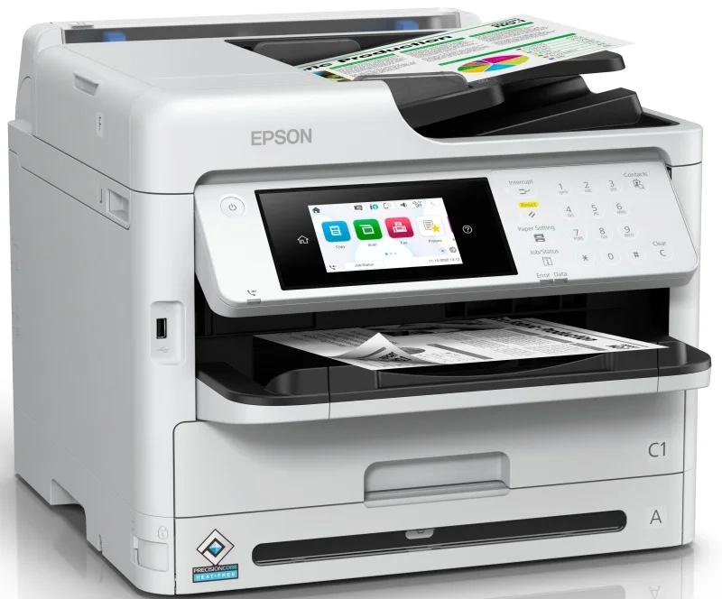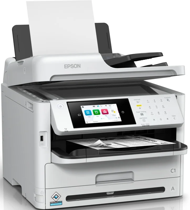 Epson WorkForce Pro WF-M5899DWF to wysoce wydajne i niezawodne urządzenie wielofunkcyjne, które zapewnia atrakcyjną opcję dla firm dążących do obniżenia kosztów eksploatacji i zwiększenia wydajności. Dzięki niskiemu całkowitemu kosztowi posiadania (TCO) oraz mniejszej liczbie części zamiennych, jest to ekonomiczny wybór, który pozwala zaoszczędzić bez utraty jakości. Szybki czas drukowania pierwszej strony (FPOT) wynoszący jedynie 4,8 sekundy od trybu gotowości gwarantuje natychmiastowe rozpoczęcie pracy, co znacząco zwiększa produktywność biura. Dodatkowo, duża wydajność atramentu pozwala na wydruk nawet do 40000 stron bez konieczności wymiany materiałów eksploatacyjnych, co dalszo redukuje koszty użytkowania. Dzięki prostemu prowadzeniu papieru oraz możliwości bezkontaktowego drukowania, urządzenie obsługuje różnorodne rodzaje podłoży, w tym papier z recyklingu, podłoża błyszczące oraz koperty. To idealne rozwiązanie dla małych grup roboczych, które mogą integrować różnorodne rozwiązania oprogramowania z istniejącą infrastrukturą IT w celu optymalizacji wydajności.
