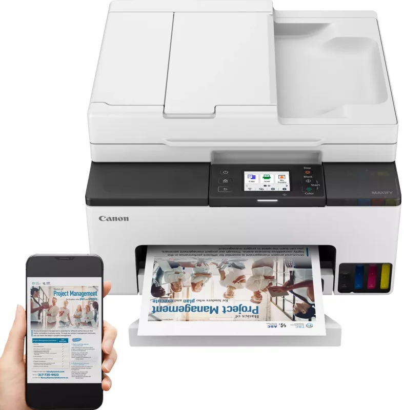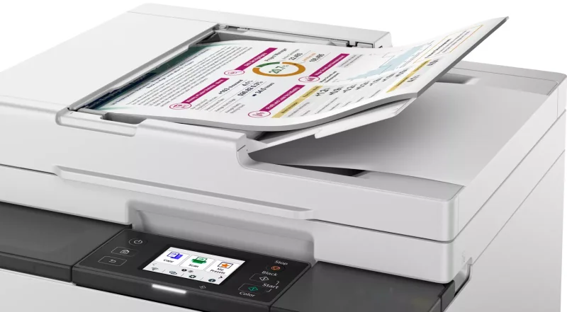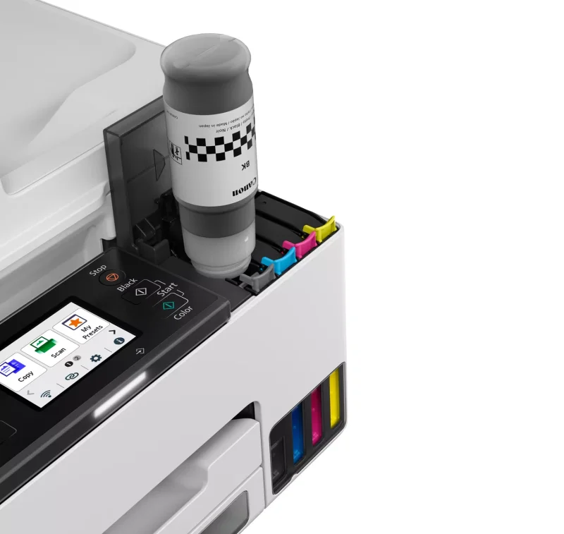 Canon MAXIFY GX2040 to innowacyjne rozwiązanie, które łączy w sobie zalety bezprzewodowej, wielofunkcyjnej atramentowej drukarki kolorowej z uzupełnianymi pojemnikami MegaTank. To urządzenie nie tylko zapewnia wydajność na poziomie biurowym, ale również doskonale sprawdza się w użytku domowym, dzięki czemu jest wszechstronnym narzędziem dla każdego użytkownika. Jedną z głównych zalet drukarki Canon MAXIFY GX2040 jest jej szybkość drukowania. W trybie monochromatycznym potrafi wydrukować aż 15 stron na minutę, a w trybie kolorowym 10 stron na minutę. Dzięki temu możesz łatwo i szybko przygotowywać profesjonalnie wyglądające dokumenty biznesowe oraz kreatywne projekty. Canon MAXIFY GX2040 został zaprojektowany z myślą o łatwej integracji z domowym otoczeniem. Dzięki konstrukcji umożliwiającej obsługę od przodu, możesz umieścić drukarkę nawet w ograniczonej przestrzeni lub tuż przy ścianie, oszczędzając cenne miejsce na biurku. Intuicyjny interfejs użytkownika, w tym odchylany ekran dotykowy LCD (6,7 cm) oraz kontrolka stanu, zapewniają prostę obsługę.