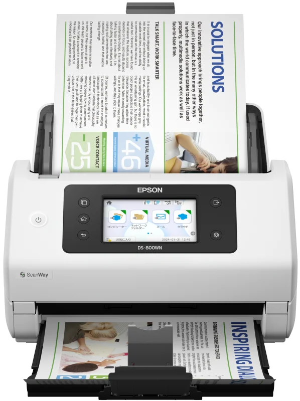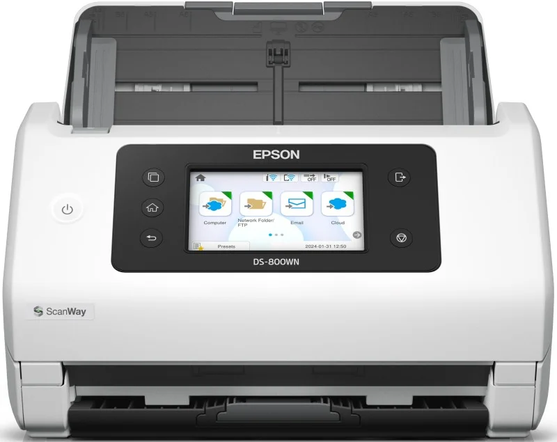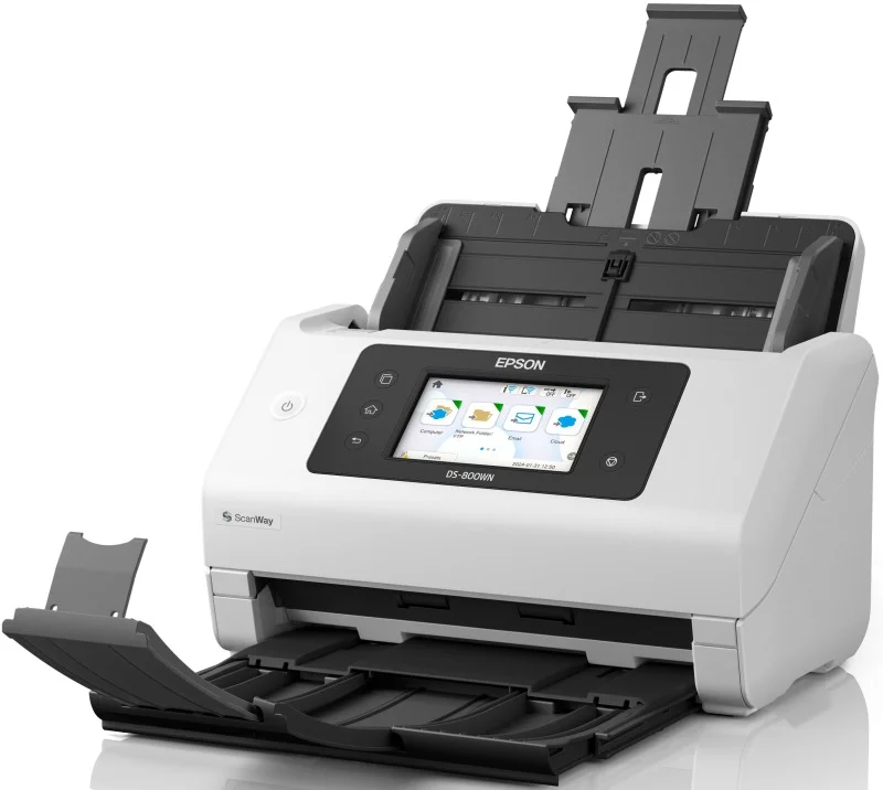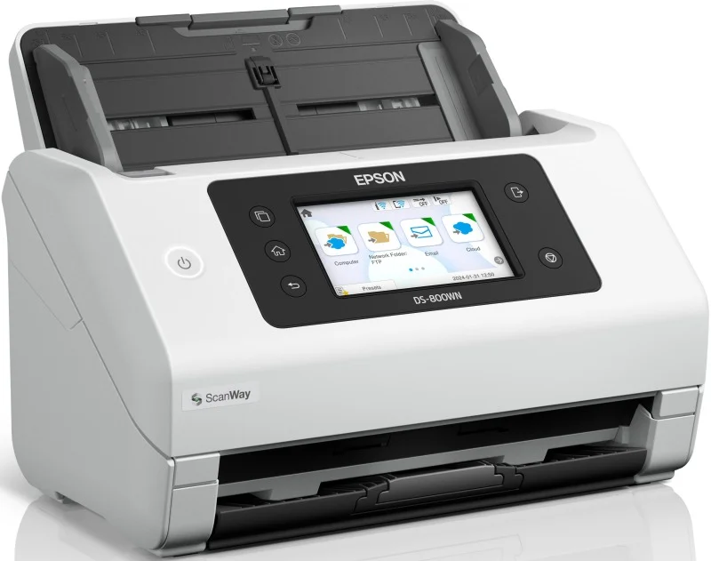 Epson WorkForce DS-800WN to zaawansowany skaner sieciowy, stworzony z myślą o efektywnej integracji w różnorodnych środowiskach biznesowych. Dzięki otwartej platformie internetowej, urządzenie umożliwia płynne połączenie zarówno z oprogramowaniem Epson, jak i aplikacjami firm trzecich. To elastyczne rozwiązanie pozwala firmom na dostosowanie systemów oraz pełną integrację z istniejącą infrastrukturą IT, co usprawnia procesy biznesowe i przepływy pracy. Skaner DS-800WN wyróżnia się wbudowaną funkcją łączności sieciowej, co pozwala na jego współdzielenie przez wielu użytkowników, z możliwością definiowania indywidualnych ustawień dla każdego z nich. Intuicyjny, dotykowy ekran LCD o wysokiej rozdzielczości umożliwia prostą i szybką obsługę urządzenia bez konieczności korzystania z komputera, co dodatkowo zwiększa komfort użytkowania i znacząco przyspiesza proces digitalizacji dokumentów.