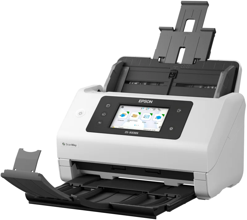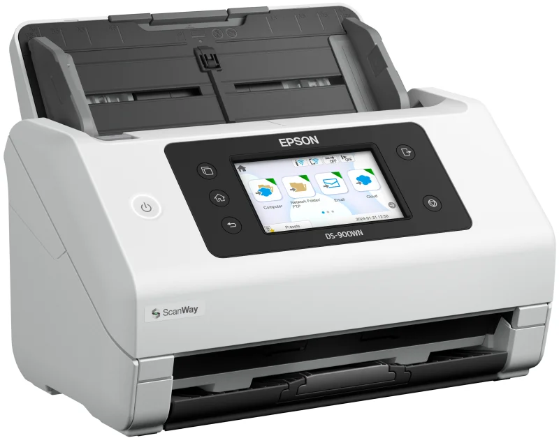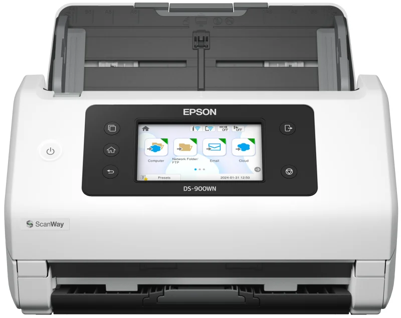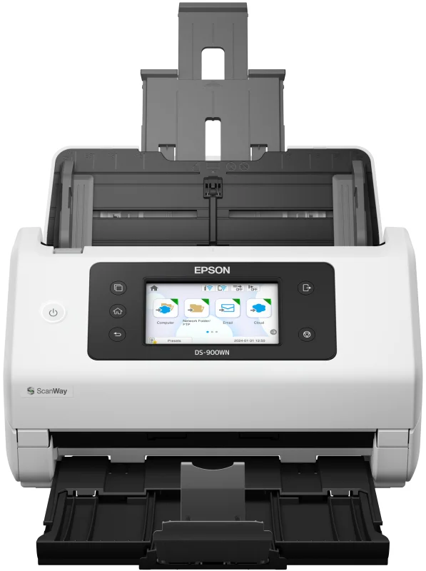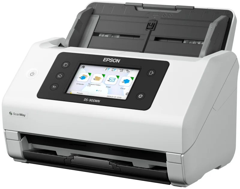 Epson WorkForce DS-900WN to zaawansowany skaner sieciowy, stworzony z myślą o efektywnej integracji w różnorodnych środowiskach biznesowych. Dzięki otwartej platformie internetowej, urządzenie umożliwia płynne połączenie zarówno z oprogramowaniem Epson, jak i aplikacjami firm trzecich. To elastyczne rozwiązanie pozwala firmom na dostosowanie systemów oraz pełną integrację z istniejącą infrastrukturą IT, co usprawnia procesy biznesowe i przepływy pracy. Skaner DS-900WN wyróżnia się wbudowaną funkcją łączności sieciowej, co pozwala na jego współdzielenie przez wielu użytkowników, z możliwością definiowania indywidualnych ustawień dla każdego z nich. Intuicyjny, dotykowy ekran LCD o wysokiej rozdzielczości umożliwia prostą i szybką obsługę urządzenia bez konieczności korzystania z komputera, co dodatkowo zwiększa komfort użytkowania i znacząco przyspiesza proces digitalizacji dokumentów.
