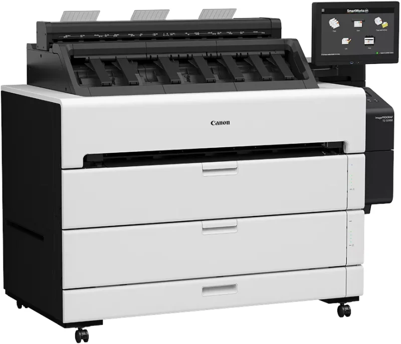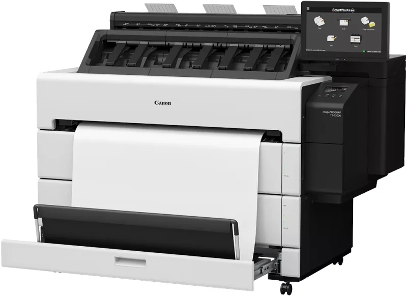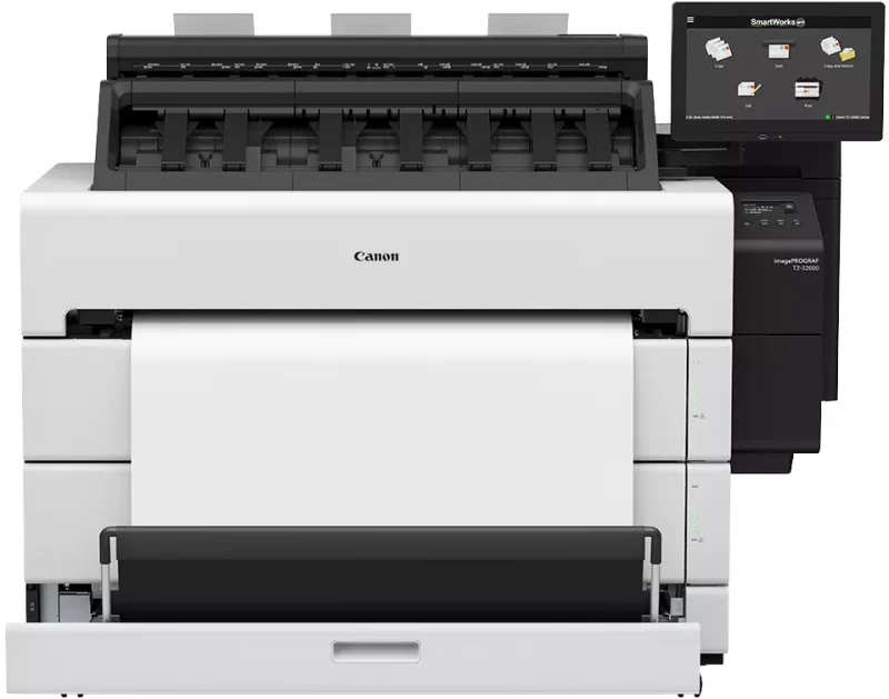 Canon ImagePROGRAF TZ-32000 MFP Z36 to zaawansowane urządzenie wielkoformatowe, które łączy funkcje drukowania, skanowania i kopiowania, zaprojektowane z myślą o maksymalnej wydajności, wszechstronności i najwyższej jakości pracy. Dzięki możliwości drukowania na różnych nośnikach, od monochromatycznych rysunków technicznych po pełnokolorowe plakaty, jest doskonałym rozwiązaniem dla profesjonalistów z branży inżynieryjnej, architektonicznej oraz reklamowej. Canon ImagePROGRAF TZ-32000 MFP jest wyposażone w lekki skaner Z36 o szerokości 36", który znajduje się na szczycie urządzenia, tworząc kompaktową konstrukcję o niewielkiej powierzchni, co ułatwia i usprawnia codzienny przepływ pracy. Skaner Z36 pozwala na skanowanie dokumentów monochromatycznych oraz dokumentów kolorowych, oferując rozdzielczość do 1200 dpi. Kontroler o przekątnej 15,6 cala zapewnia łatwy dostęp do funkcji skanowania, kopiowania i drukowania.