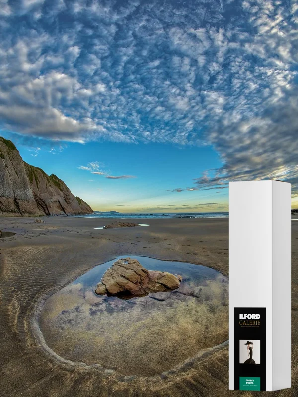 Ilford Galerie Glossy Photo to wysokiej klasy papier fotograficzny do drukarek atramentowych, cechujący się dużą gramaturą, wyjątkową trwałością i precyzyjnym odwzorowaniem kolorów. Dzięki solidnej, błyszczącej powierzchni, zapewnia profesjonalną jakość wydruków, które nie tylko zachwycają szczegółowością i nasyceniem barw, ale również cechują się zwiększoną odpornością na czynniki zewnętrzne, gwarantując ich długowieczność. Papier ten został stworzony z zastosowaniem nowoczesnej, uniwersalnej technologii powlekania atramentowego, co sprawia, że wydruki są natychmiast suche po opuszczeniu drukarki. Jego błyszcząca powierzchnia idealnie sprawdza się przy różnorodnych projektach fotograficznych, od realistycznych portretów, poprzez malownicze krajobrazy, aż po dynamiczne ujęcia dzikiej przyrody, monochromatyczne konwersje, abstrakcje, makrofotografie czy architektoniczne kompozycje.