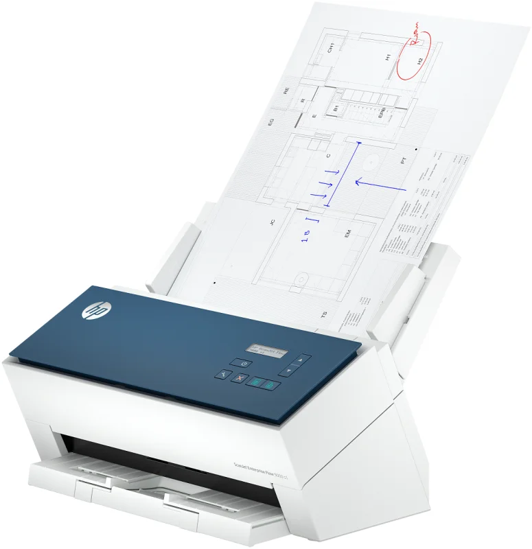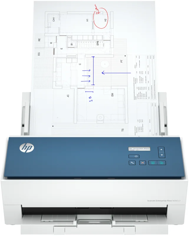 HP ScanJet Enterprise Flow 9000 s1 to wysokowydajny skaner klasy korporacyjnej, zaprojektowany z myślą o profesjonalnym przetwarzaniu dokumentów w środowiskach wymagających niezawodności, szybkości i elastyczności obsługi różnych formatów. Dzięki możliwości skanowania dokumentów w formacie do A3 - takich jak plakaty, rysunki techniczne czy dokumentacja projektowa - urządzenie oferuje znakomitą jakość obrazu bez kompromisów. Zaawansowana technologia HP EveryPage umożliwia bezbłędne skanowanie mieszanych zestawów dokumentów, niezależnie od ich formatu, gramatury czy struktury. Dodatkowo, tryb pracy z obniżoną prędkością zapewnia bezpieczną obsługę delikatnych nośników, chroniąc cienkie papiery przed uszkodzeniem. Urządzenie charakteryzuje się niezwykle wysoką wydajnością, oferując skanowanie dwustronne w jednym przebiegu z prędkością do 80 stron lub 160 obrazów na minutę.