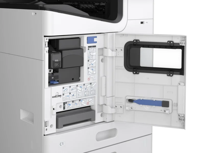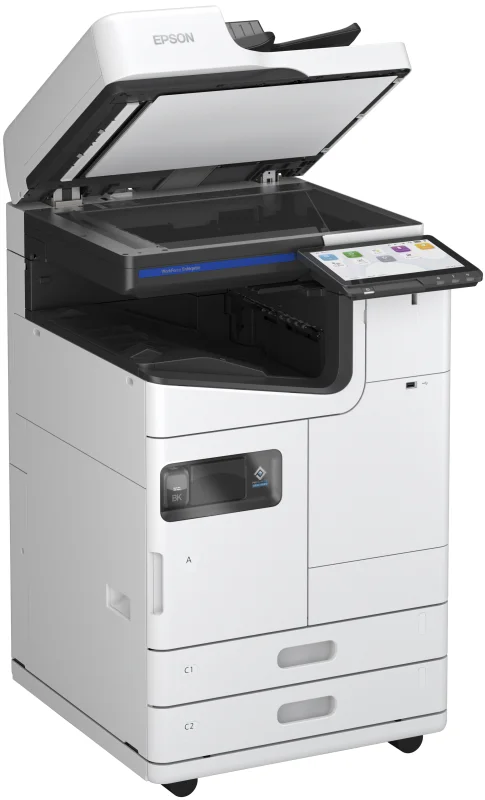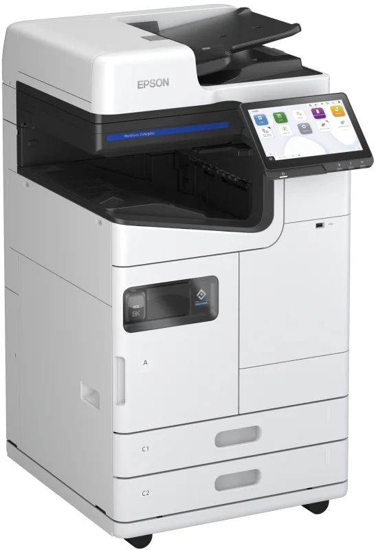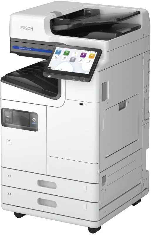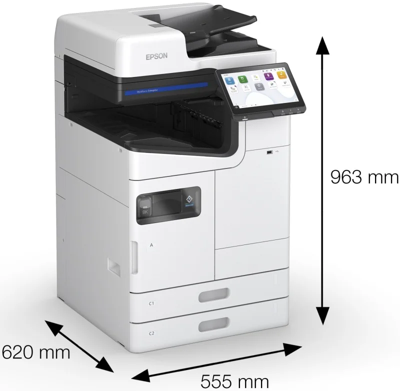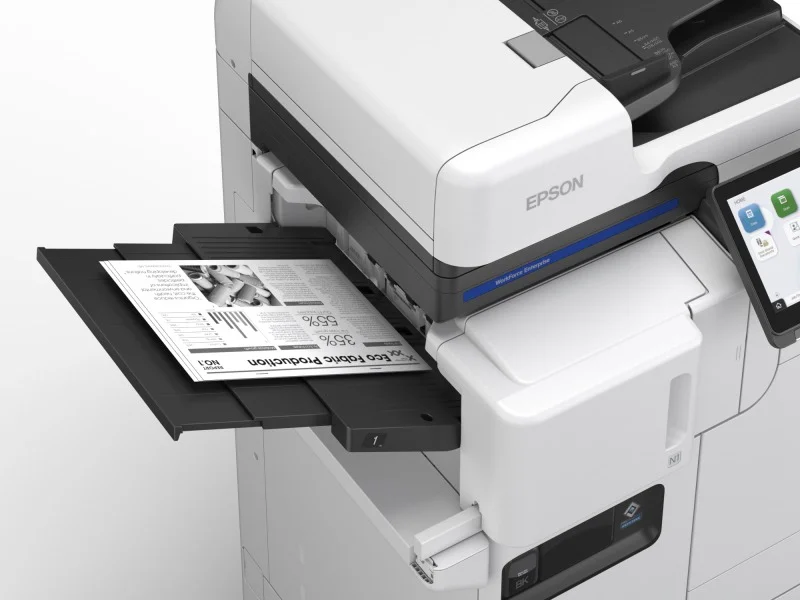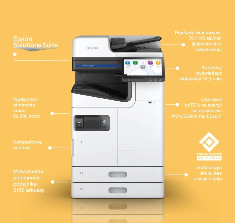 Epson WorkForce Enterprise AM-M5500 to zaawansowane monochromatyczne urządzenie wielofunkcyjne A3, które stanowi doskonałe rozwiązanie dla nowoczesnych biur stawiających na wysoką wydajność, oszczędność energii oraz kompaktową formę. Dzięki innowacyjnej technologii PrecisionCore i solidnej konstrukcji, model AM-M5500 oferuje wyjątkowo szybkie drukowanie z prędkością do 55 stron na minutę, a czas uzyskania pierwszej strony wynosi zaledwie 4,8 sekundy, co znacząco przyspiesza realizację codziennych zadań. Urządzenie zostało zaprojektowane z myślą o minimalizacji wpływu na środowisko - charakteryzuje się wyjątkowo niskim zużyciem energii oraz ograniczoną potrzebą konserwacji, co przekłada się na niższe koszty eksploatacji i większą niezawodność. Kompaktowa obudowa sprawia, że AM-M5500 doskonale sprawdza się nawet w przestrzeniach o ograniczonej powierzchni, jednocześnie oferując funkcje klasy korporacyjnej.