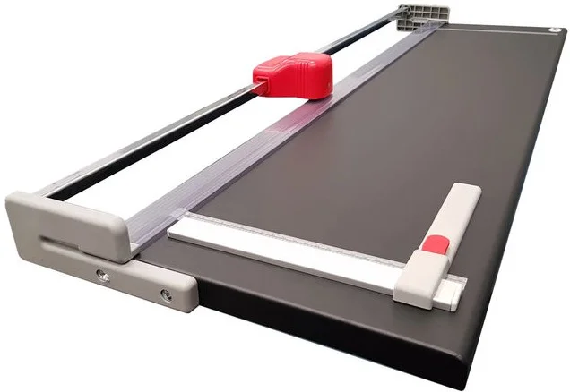 Desk Trim Plus to wysokiej klasy, kompaktowy trymer, zaprojektowany z myślą o precyzyjnym i efektywnym cięciu materiałów w środowiskach o średnim natężeniu pracy. Dzięki swojej zwartej, nowoczesnej konstrukcji oraz niewielkim rozmiarom idealnie sprawdza się w biurach, pracowniach projektowych, punktach usługowych oraz instytucjach edukacyjnych. Urządzenie zostało wyposażone w trwałe, krążkowe ostrze ze stali nierdzewnej, poruszające się płynnie po wzmocnionej prowadnicy. Ruchoma głowica tnąca umożliwia cięcie szerokiej gamy materiałów, takich jak papier, cienki karton, banery PVC, folie czy lekkie tworzywa sztuczne – o grubości do 0,6 mm. Powierzchnia robocza trymera wykonana została z wytrzymałej blachy stalowej, pokrytej farbą epoksydową odporną na zarysowania i uszkodzenia mechaniczne. Dodatkowo, nadrukowana podziałka milimetrowa i siatka formatowa ułatwiają precyzyjne pozycjonowanie materiału i cięcie w różnych formatach.