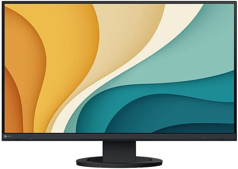 Zamiast tradycyjnych przycisków mechanicznych, monitor Eizo EV2740S został wyposażony w nowoczesne, elektrostatyczne przełączniki zintegrowane z przednim panelem urządzenia. Takie rozwiązanie nie tylko podnosi komfort obsługi, ale również nadaje konstrukcji elegancki i minimalistyczny charakter. Dzięki funkcji Button Guide użytkownik zyskuje szybki i przejrzysty dostęp do wszystkich funkcji monitora - wystarczy delikatne dotknięcie panelu, aby na ekranie pojawiła się czytelna informacja o przypisaniu poszczególnych przycisków. Przemyślana konstrukcja umożliwia intuicyjne sterowanie i sprawną konfigurację parametrów pracy urządzenia bez konieczności zagłębiania się w menu. Zintegrowane głośniki oraz elementy sterujące zostały dyskretnie wkomponowane w przednią ramkę monitora i ukierunkowane bezpośrednio w stronę użytkownika, co gwarantuje optymalne brzmienie i łatwy dostęp do najważniejszych funkcji.