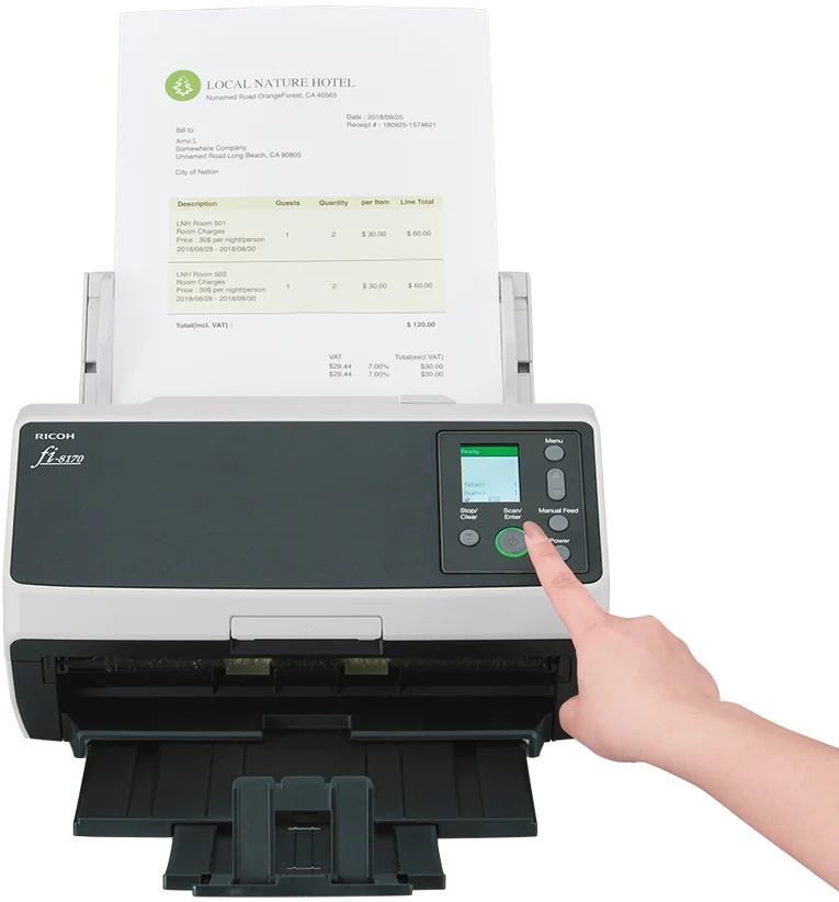 Skaner Ricoh fi-8170 to nowoczesne urządzenie klasy biznesowej, które łączy w sobie najwyższą jakość przetwarzania obrazu, imponującą wydajność oraz inteligentne funkcje automatyzacji pracy. Został zaprojektowany z myślą o profesjonalnych biurach, instytucjach finansowych, urzędach i działach administracyjnych, gdzie liczy się niezawodność, precyzja i efektywność. Nowa technologia Clear Image Capture zastosowana w modelu fi-8170 zapewnia jakość obrazu porównywalną z sensorami CCD, przy jednoczesnym wykorzystaniu energooszczędnych czujników CIS. Dzięki temu skaner gwarantuje wyjątkową ostrość, dokładne odwzorowanie kolorów i czytelność detali. Ricoh fi-8170 oferuje prędkość skanowania do 70 stron na minutę (140 obrazów/min w trybie dupleks). Ulepszony mechanizm podawania papieru z technologią Automatic Separation Control automatycznie dostosowuje moment obrotowy rolek do grubości stosu papieru.