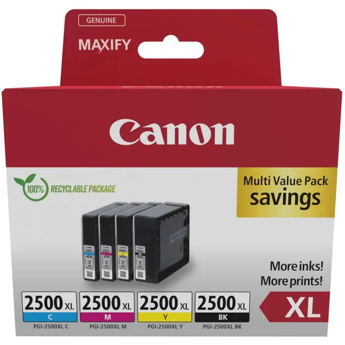 Specyfikacja Zestaw wkładów Canon PGI-2500XL C/M/Y/BK