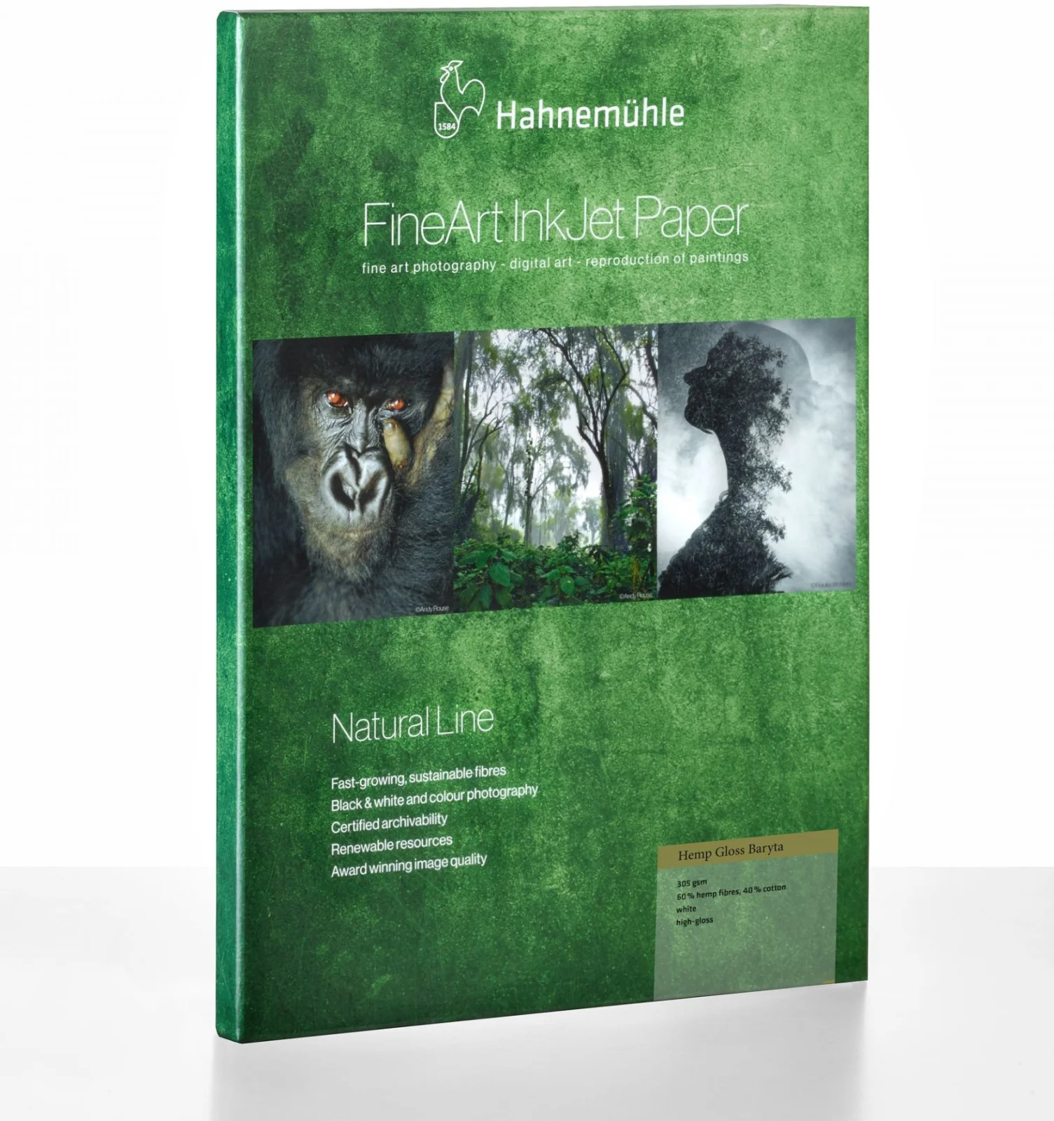 Hahnemühle Hemp Gloss Baryta to ekskluzywny papier FineArt, który łączy klasyczną estetykę papierów barytowych z nowoczesną, ekologiczną technologią produkcji. Wytworzony z mieszanki 60% włókna konopnego i 40% bawełny, oferuje wyjątkową trwałość, szlachetną fakturę oraz naturalny, biały odcień pozbawiony optycznych rozjaśniaczy. Delikatnie filcowana struktura w połączeniu z wysokopołyskowym wykończeniem nadają wydrukom elegancję i głębię charakterystyczną dla tradycyjnych papierów ciemniowych. Specjalna powłoka premium zapewnia znakomite odwzorowanie kolorów, perfekcyjne oddanie detali, głębokie czernie (D-Max) oraz dynamiczny kontrast. Dodatek siarczanu baru (baryta) poszerza zakres tonalny i poprawia ostrość. Papier jest bezkwasowy i bezligninowy. Dzięki wykorzystaniu włókna konopnego, Hemp Gloss Baryta stanowi świadomy wybór dla twórców ceniących zarówno najwyższą jakość, jak i odpowiedzialność ekologiczną.