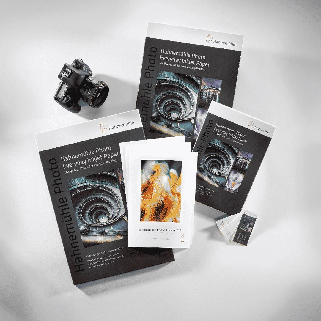 Hahnemühle Sustainable Photo Glossy to wysokiej jakości papier fotograficzny dla drukarek atramentowych, stworzony z myślą o nowoczesnych, ekologicznych rozwiązaniach. Wykonany w 100% z alfa-celulozy, oferuje jaskrawo białą barwę, idealnie gładką powierzchnię oraz błyszczące wykończenie, dzięki czemu zapewnia doskonałą ostrość, wyrazistość detali i żywą reprodukcję kolorów. Kluczowym wyróżnikiem tego papieru jest innowacyjna powłoka atramentowa pozbawiona tworzyw sztucznych i folii, która pozwala na pełny recykling w standardowym cyklu makulaturowym. To sprawia, że Sustainable Photo Glossy jest przyjazną środowisku alternatywą dla tradycyjnych papierów fotograficznych na bazie PE. Papier został zaprojektowany z myślą o fotografiach, plakatach oraz codziennych aplikacjach drukarskich, łącząc wysoką jakość wydruku z praktycznością użytkowania. Co istotne, jego produkcja wymaga mniejszego zużycia wody oraz generuje niższą emisję CO₂.