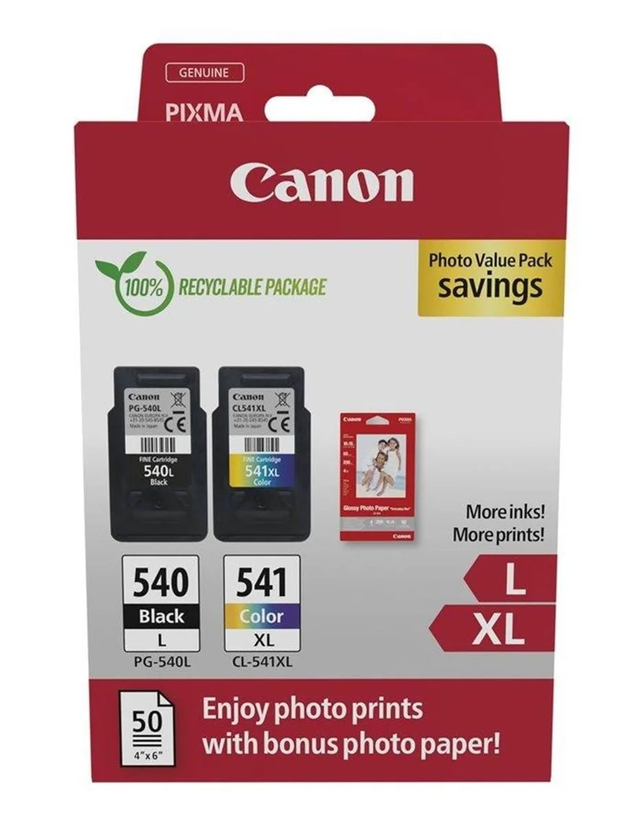 Zestaw wkładów atramentu Canon PG-540L BK black, CL-541XL color + papier Canon GP-501 do:
