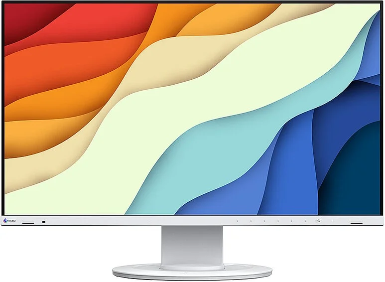Zamiast tradycyjnych przycisków mechanicznych, monitor Eizo EV2400R został wyposażony w nowoczesne, elektrostatyczne przełączniki zintegrowane z przednim panelem urządzenia. Takie rozwiązanie nie tylko podnosi komfort obsługi, ale również nadaje konstrukcji elegancki i minimalistyczny charakter. Dzięki funkcji Button Guide użytkownik zyskuje szybki i przejrzysty dostęp do wszystkich funkcji monitora - wystarczy delikatne dotknięcie panelu, aby na ekranie pojawiła się czytelna informacja o przypisaniu poszczególnych przycisków. Przemyślana konstrukcja umożliwia intuicyjne sterowanie i sprawną konfigurację parametrów pracy urządzenia bez konieczności zagłębiania się w menu. Zintegrowane głośniki oraz elementy sterujące zostały dyskretnie wkomponowane w przednią ramkę monitora i ukierunkowane bezpośrednio w stronę użytkownika, co gwarantuje optymalne brzmienie i łatwy dostęp do najważniejszych funkcji.