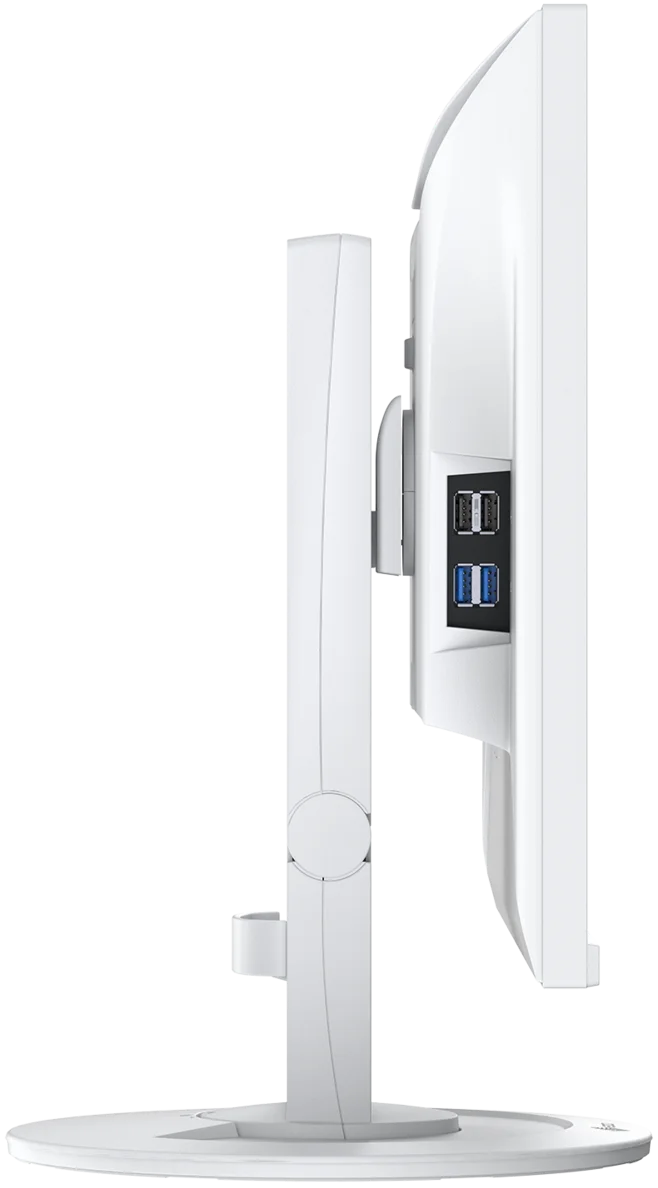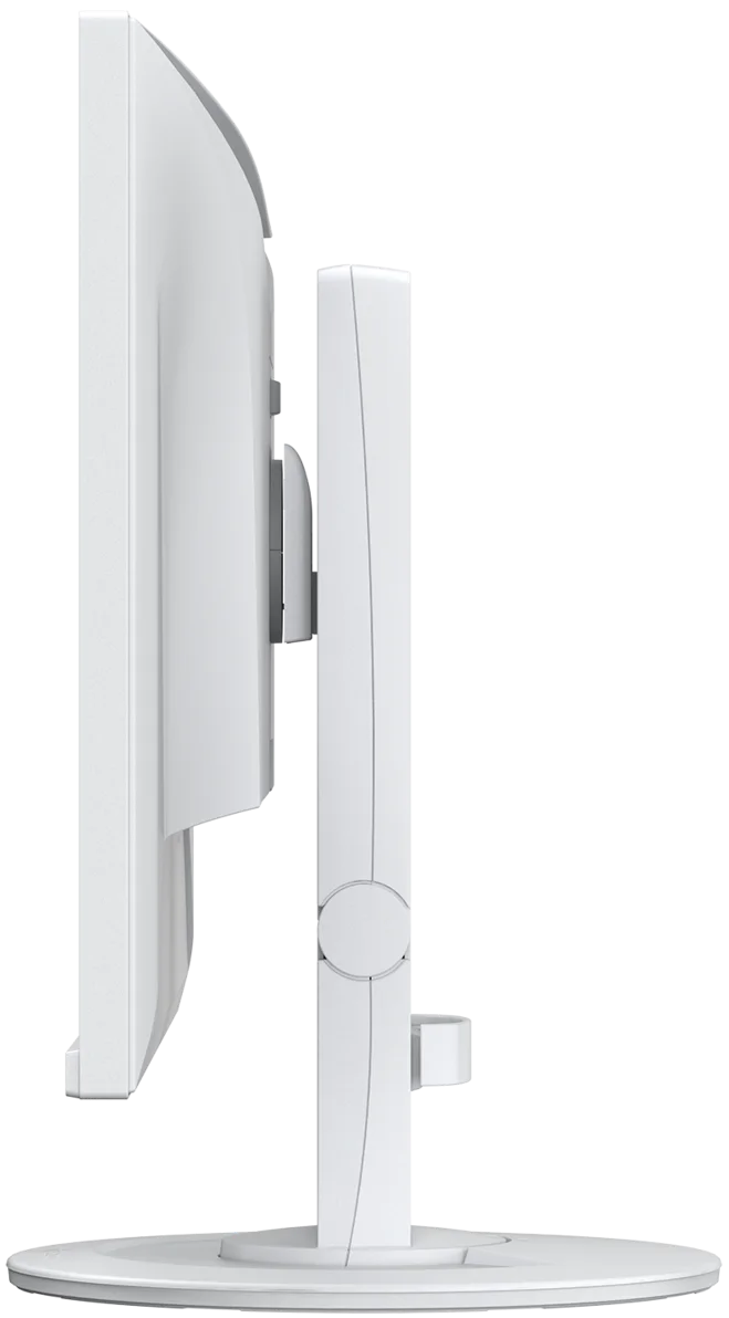 Monitor wyposażono w stabilną, ergonomiczną podstawę, która umożliwia pełną regulację w zakresie wysokości, nachylenia, obrotu w poziomie (swivel) oraz pionowego ustawienia ekranu (pivot), gwarantując tym samym maksymalną wygodę użytkowania. Dzięki temu użytkownik może precyzyjnie dopasować pozycję monitora do własnych potrzeb i zadbać o prawidłową postawę ciała podczas pracy. Zakres regulacji wysokości pozwala obniżyć ekran niemal do poziomu podstawy, co umożliwia ergonomiczne ustawienie górnej krawędzi obrazu poniżej linii wzroku. Możliwość pracy w trybie portretowym jest szczególnie przydatna przy edycji tekstów, zdjęć, grafiki lub dokumentów o dużej długości. Funkcja obrotu i pochylania dodatkowo zwiększa elastyczność ustawień oraz komfort korzystania z urządzenia. Taka konstrukcja podstawy sprawia, że monitor idealnie sprawdza się w nowoczesnym środowisku biurowym oraz w pracy zdalnej, zapewniając wygodę i większą efektywność.