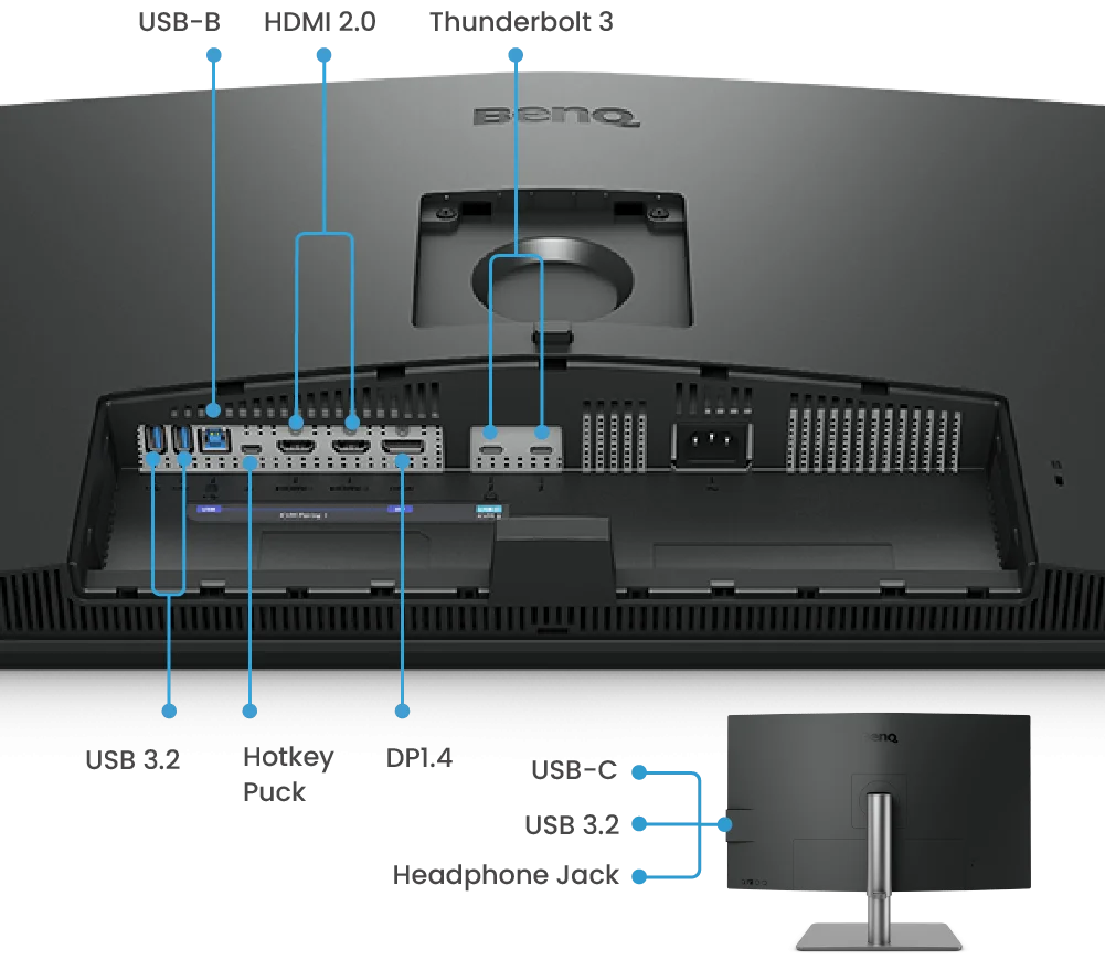 Monitor PD3225U wyposażony jest w zaawansowany przełącznik KVM (Keyboard, Video, Mouse), który umożliwia wygodne zarządzanie dwoma systemami komputerowymi przy użyciu jednej klawiatury i myszy. Przełączanie między urządzeniami odbywa się łatwo i intuicyjnie za pomocą kontrolera Hotkey Puck G2, co pozwala znacząco zwiększyć efektywność pracy w wielozadaniowym środowisku. BenQ Hotkey Puck G2 zapewnia użytkownikom pełną elastyczność i możliwość szybkiego dostępu do najczęściej używanych funkcji. Za pomocą obrotowego pokrętła można w prosty sposób regulować jasność, kontrast i głośność, a trzy programowalne klawisze funkcyjne umożliwiają przypisywanie własnych skrótów do zestawów funkcji. Dodatkowo klawisz obrotu pozwala na tworzenie niestandardowych skrótów dla indywidualnych ustawień, co jeszcze bardziej usprawnia codzienną pracę i optymalizuje przepływ zadań w profesjonalnym środowisku graficznym.