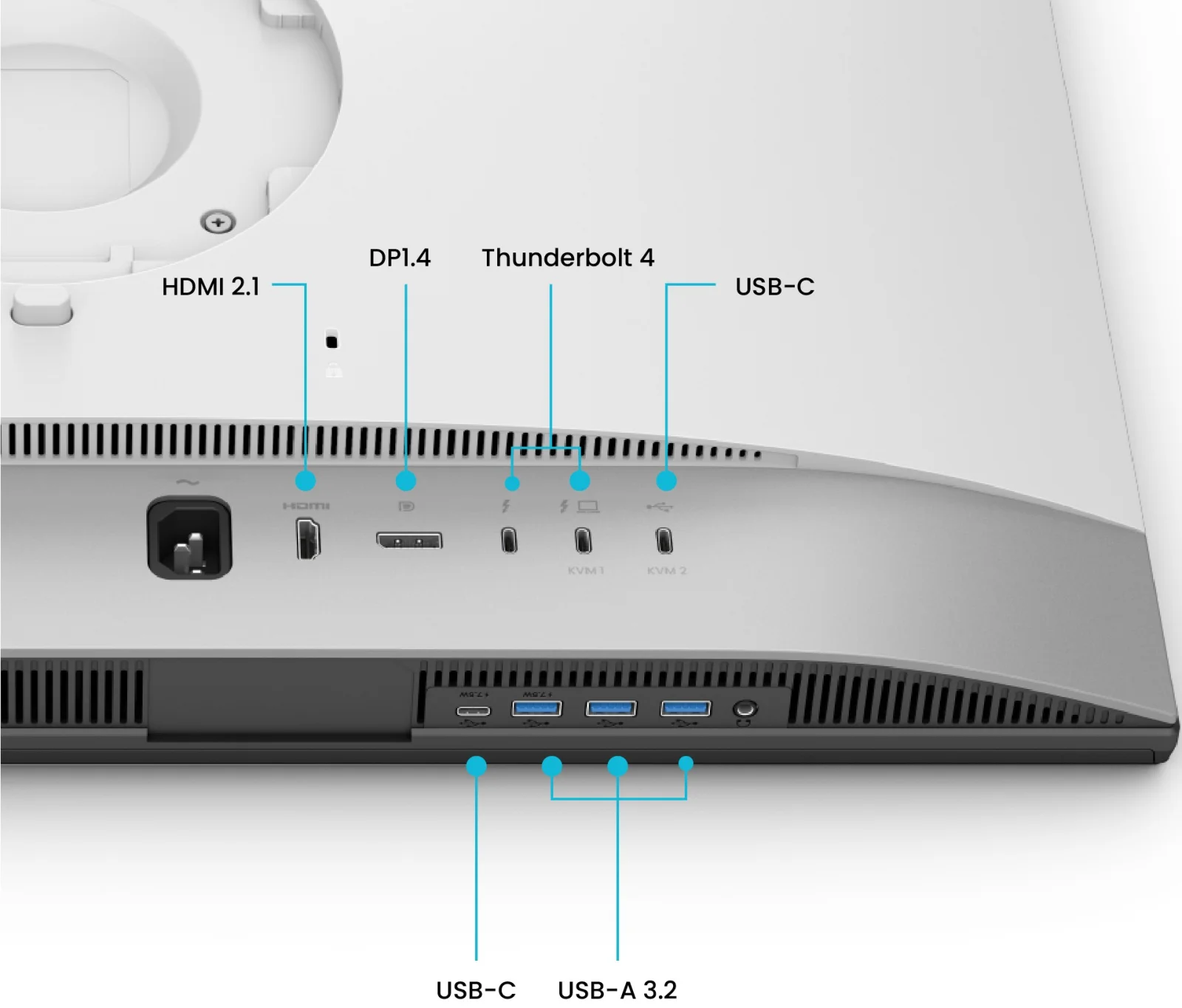 Monitor wyposażono w nowoczesne złącze Thunderbolt 4, które znacząco upraszcza organizację stanowiska pracy i jednocześnie zapewnia wyjątkową wydajność przesyłu danych. Technologia ta umożliwia ultraszybki transfer obrazu, wideo oraz danych z prędkością do 40 Gb/s, a także jednoczesne zasilanie podłączonych urządzeń mocą do 90 W. Dzięki temu jeden przewód może obsługiwać wiele funkcji jednocześnie, eliminując potrzebę stosowania wielu kabli i pozwalając utrzymać uporządkowaną przestrzeń roboczą. Dodatkowo monitor wspiera funkcję połączenia łańcuchowego (daisy chaining), która pozwala na rozszerzenie stanowiska pracy o kolejne wyświetlacze przy użyciu jednego portu. Dzięki temu możliwe jest stworzenie konfiguracji z dwoma monitorami 5K pracującymi w rozdzielczości 60 Hz, co znacząco zwiększa przestrzeń roboczą oraz komfort pracy przy złożonych projektach graficznych, wizualizacjach czy montażu wideo.
