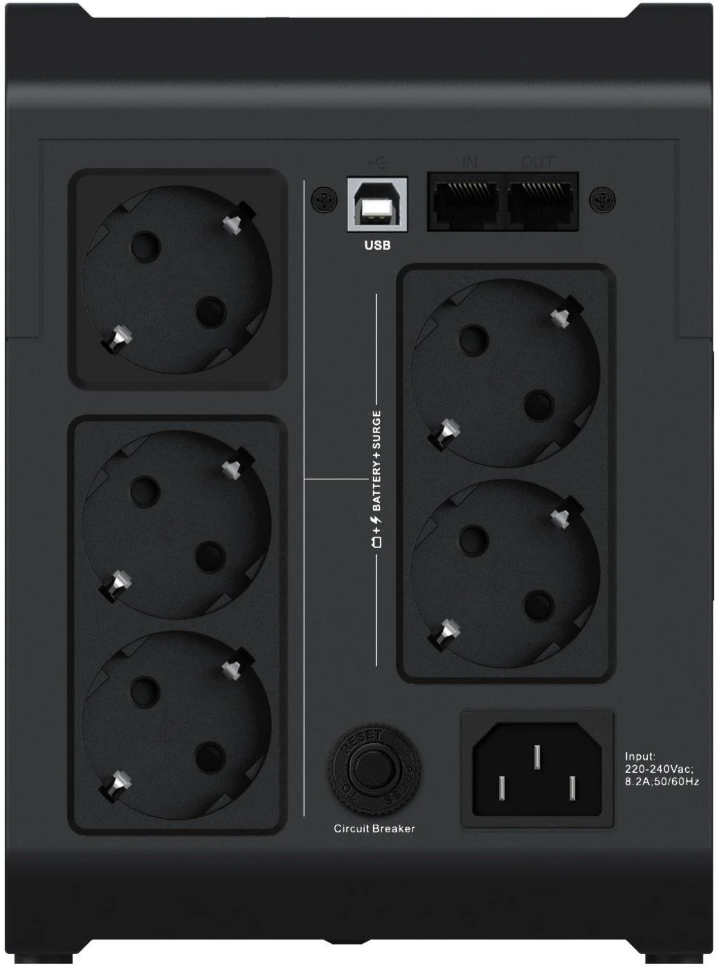- Gniazda rezerwowe akumulatora i zabezpieczone przed przepięciami: 5 (Schuko)