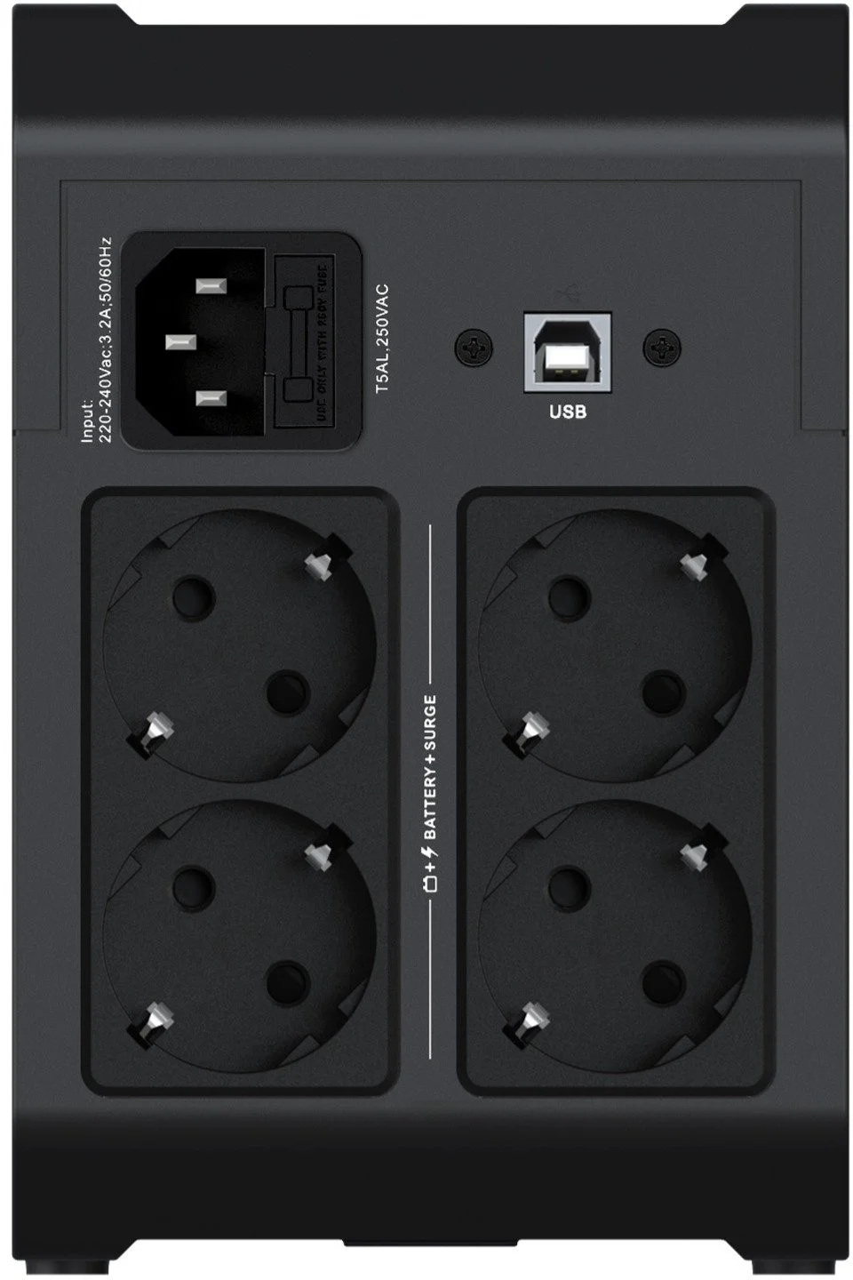 - Gniazda rezerwowe akumulatora i zabezpieczone przed przepięciami: 4 (Schuko)