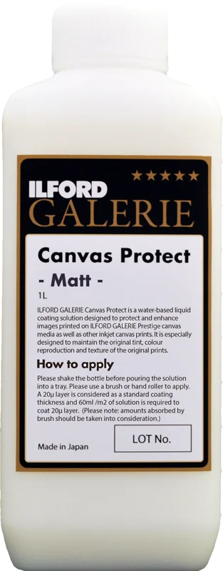 Ilford Galerie Canvas Protect to wodny laminat w płynie, opracowany specjalnie w celu ochrony oraz podkreślenia jakości wydruków wykonanych na płótnach z serii GALERIE, jak również innych płótnach atramentowych dostępnych na rynku. Zastosowanie preparatu Canvas Protect na wydrukach na płótnie minimalizuje lub całkowicie eliminuje ryzyko pękania podczas naciągania i zawijania materiału na krosna malarskie (stretcher bars). ILFORD Galerie Canvas Protect nie wpływa na oryginalny odcień, kolorystykę ani strukturę wydruku. Preparat jest wyjątkowo łatwy w aplikacji - można go nakładać zarówno za pomocą wałka, jak i standardowego pędzla.