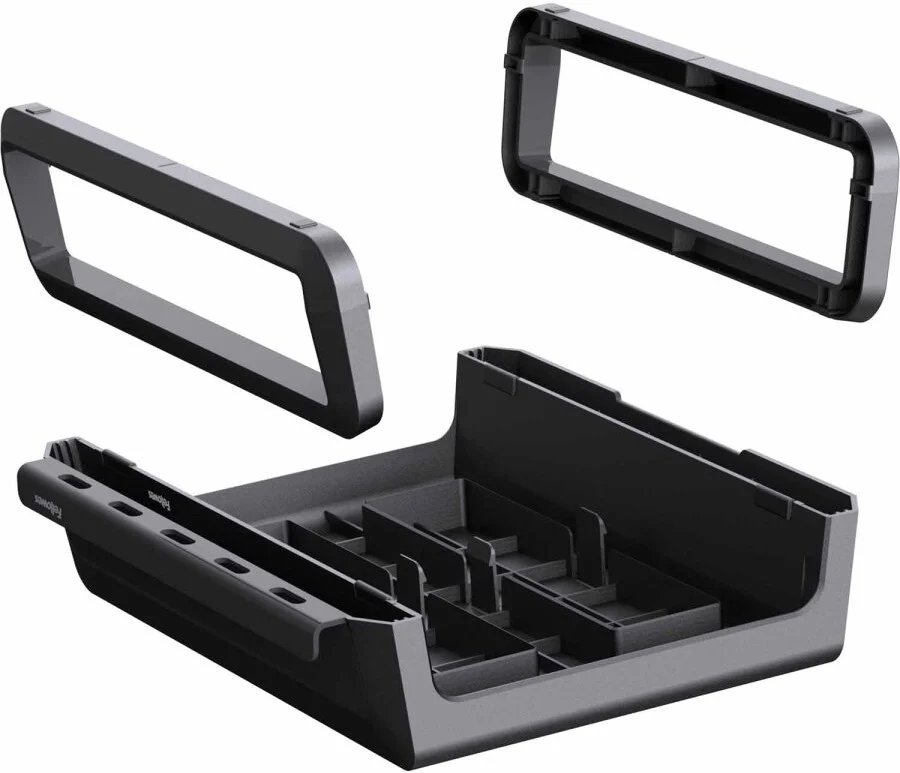 - Wbudowana półka na urządzenie z dostępem do kabla ładowania