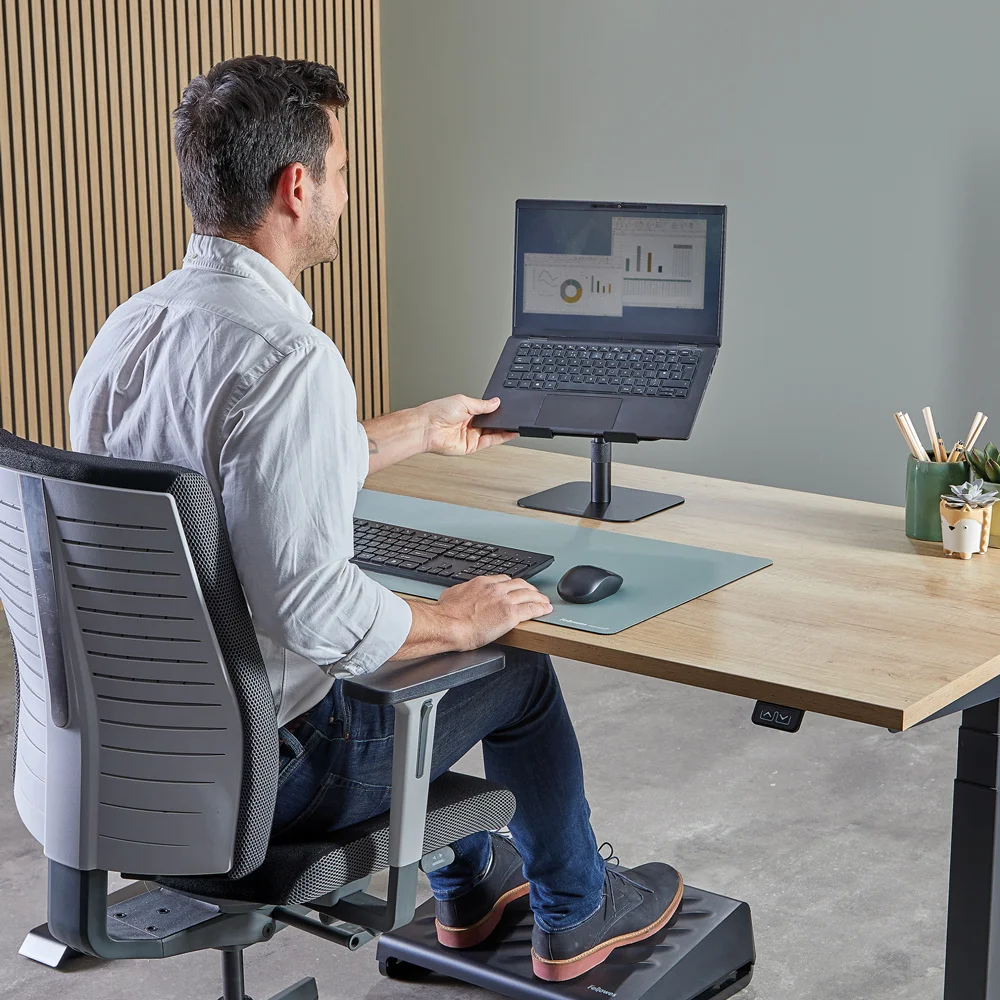 - Umożliwia łatwą regulację wysokości w zakresie od 15 do 30 cm, aby zapewnić prawidłową ergonomiczną postawę podczas pracy przy biurku