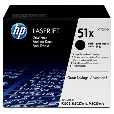 Opis Zestaw tonerów 2x czarny HP Q7551X (do 13000 kopii)