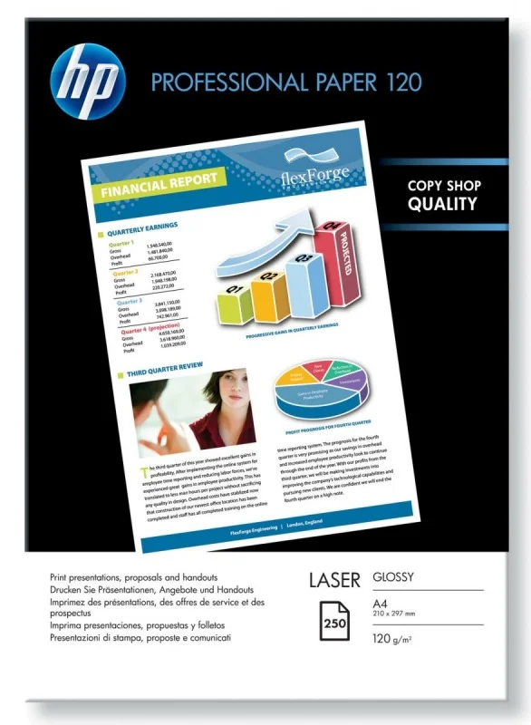 | Opis | Błyszczący papier HP Professional Laser umożliwia drukowanie wysokiej jakości biuletynów, raportów, ofert i prezentacji. Doskonały papier do tworzenia wysokiej jakości błyszczących wydruków. Tworzenie profesjonalnych materiałów marketingowych bez wychodzenia z biura. |