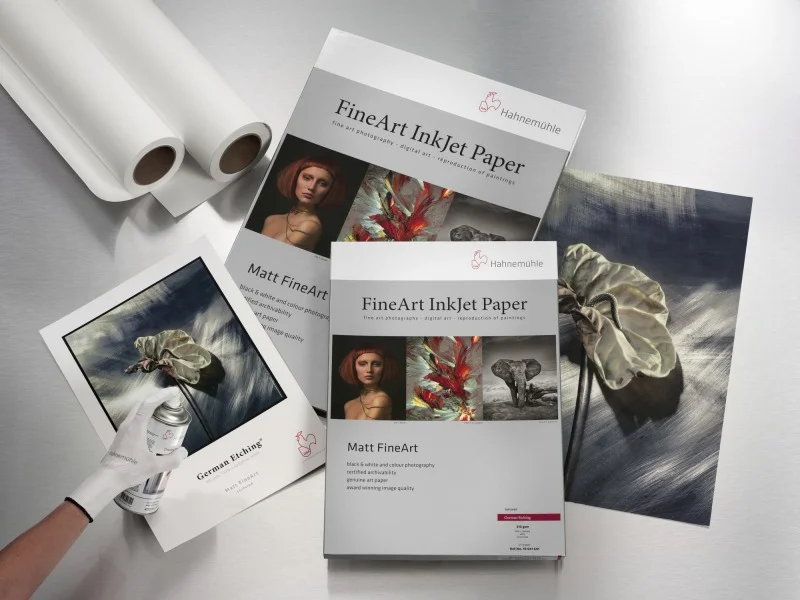 Papier "Etching" jest aksamitnie gładką powierzchnią o delikatnej strukturze. Twarde podłoże German Etching jest jednym z najbardziej popularnych mediów na całym świecie. Polecana szczególnie dla grafiki i fotografii.