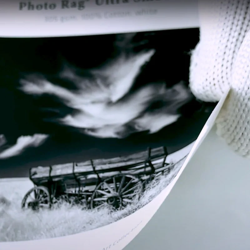 Photo Rag Ultra Smooth to biały papier w stu procentach bawełniany o delikatnej fakturze. Bez kwasowe wykonanie gwarantuje iż spełnia on wysokie standardy archiwalne