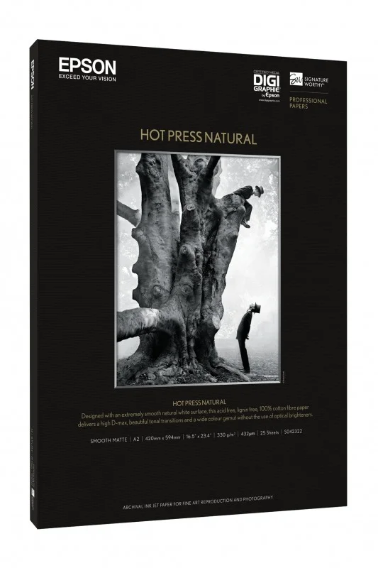 Do sztuki cyfrowej i fotografii artyści oraz profesjonalni fotografowie potrzebują prawdziwych nośników dokumentalnych o różnych gramaturach i właściwościach powierzchni. Firma Epson oferuje teraz bezkwasowy, 100-procentowy papier bawełniany Hot Press powleczony po obu stronach, co gwarantuje mu bardziej wszechstronne zastosowanie.