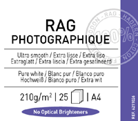 Rag Photographique ma idealnie gładką powierzchnię a w dotyku jest bardzo przyjemnie satynowy. Zapewnia uzyskiwanie intensywnych kolorów, głęboką czerń o współczynniku Dmax jednym z najwyższych na rynku (optycznie największa głębia czerni).