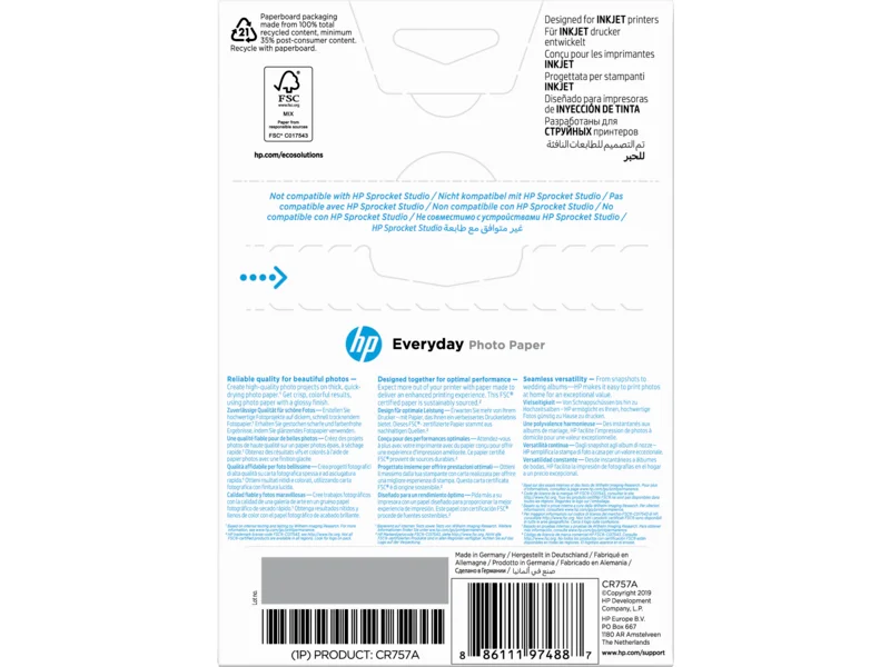 | Opis produktu | HP Everyday Photo Paper - papier fotograficzny błyszczący - 100 arkusz(-y) |