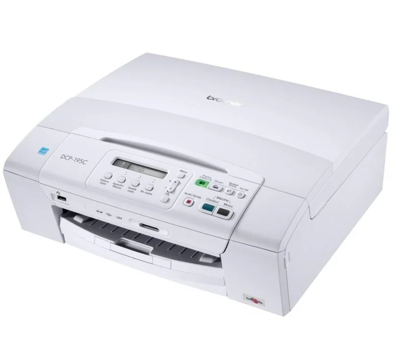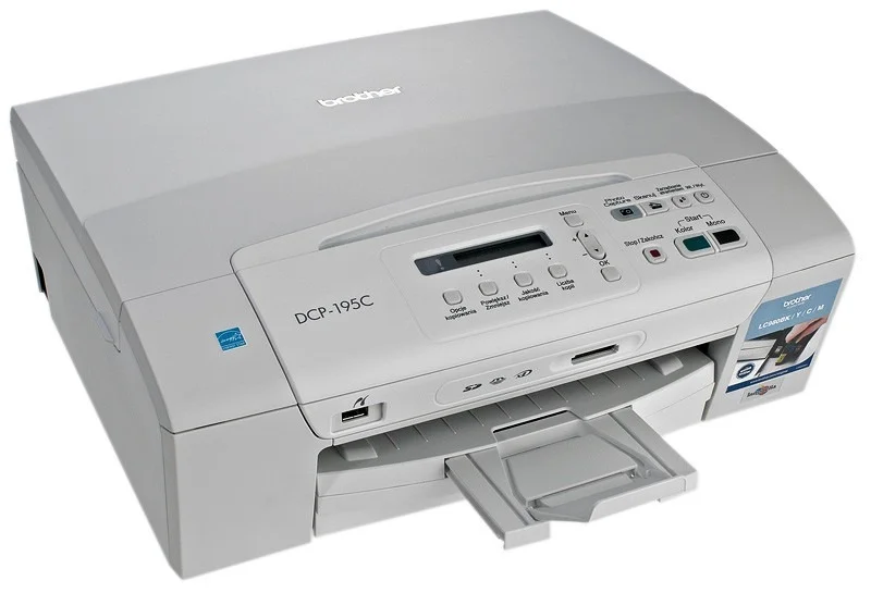 Kolorowa atramentowa drukarka, kopiarka i skaner z czytnikiem kart pamięci DCP-195Cwielofunkcyjne urządzenie atramentowe pozwala drukować, kopiować i skanować. Prędkość druku (33 str./min. mono oraz 27 str./min kolor). Bezpośredni wydruk fotografii z kart pamięci oraz aparatu (PictBridge).