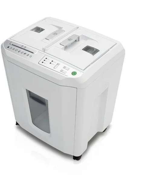 Kompaktowa przybiurkowa niszczarka dokumentów z automatycznym podajnikiem tnąca w systemie paskowo-odcinkowym (4 stopień tajności według DIN 66399), idealna dla Twojego biura. Wygodne, automatyczne niszczenie do 150 arkuszy. Oddzielny zespół tnący oraz pojemnik na płyty CD / DVD. Niszczy jednorazowo 8 kartek papieru.