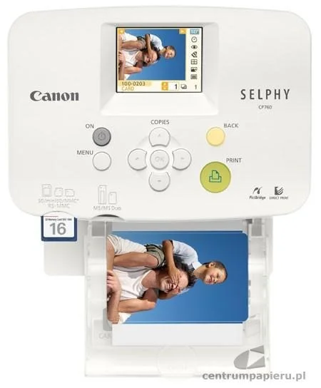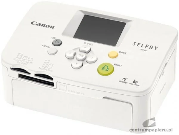 Dzięki niedrogiej drukarce SELPHY CP760 drukowanie zdjęć o wspaniałej jakości jest w zasięgu możliwości każdego. Jej niewielki rozmiar umożliwia łatwą obsługę po ustawieniu na stole.