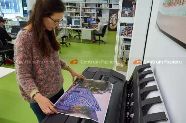 HP DesignJet T920 - urządzenie z podajnikiem rolkowym ładowanym od frontu ułatwia obsługę codzienną maszyny, a 6 kolorowy system druku pozwala maszynie osiągnąć oszałamiające wyniki w jakości druku map lub wizualizacji Twojego projektu.