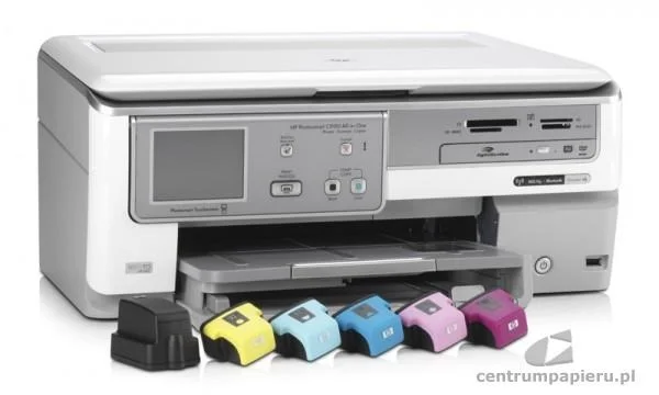 | Zawartość opakowania | Urządzenie wielofunkcyjne HP Photosmart C8180, czarny wkład atramentowy HP 363 (wkład próbny), wkłady atramentowe HP 363 — błękitny, purpurowy, żółty, jasnobłękitny i jasnopurpurowy, oprogramowanie HP Photosmart Essential, instrukcja instalacyjna, podręcznik użytkownika, kabel zasilania |