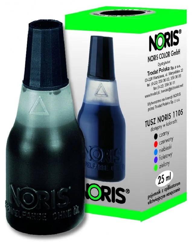 Uniwersalny tusz wodny do stempli ręcznych i samotuszujących, z gumową i polimerową płytką stemplującą. Buteleczka 25 ml z końcówką ułatwiającą nasączenie poduszek oraz nakrętką w kolorze tuszu.