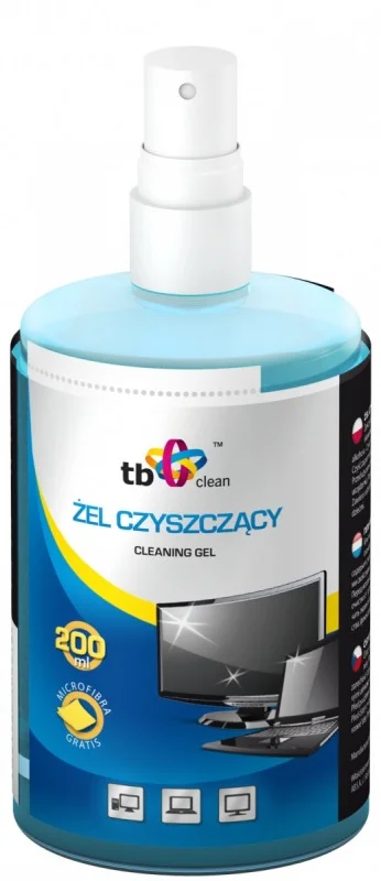 Żel czyszczący TB Clean do ekranów TFT/LCD/LED/Plasma, notebooków, skanerów, filtrów i szklanych powierzchni każdego rodzaju. Nie zawiera alkoholu. Czyści nie pozostawiając smug. Posiada właściwości antystatyczne. Najlepiej czyścić za pomocą dołączonej ściereczki z mikrofibry.
