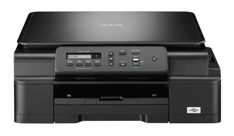 Ten kompaktowy i elegancki model oferuje prędkość druku wynoszącą 11 obrazów na minutę (w trybie monochromatycznym) oraz 6 obrazów na minutę (w trybie kolorowym) zgodnie z normą ISO/IEC 24734. Urządzenie jest wyposażone w standardowy podajnik papieru mieszczący 100 arkuszy. Intuicyjną i bezproblemową obsługę modelu zapewnia natomiast 1-liniowy wyświetlacz LCD. Model DCP-J100 posiada także zintegrowany, płaski skaner, który umożliwia wygodne kopiowanie oraz skanowanie dokumentów, w tym nośników oprawionych lub o nieregularnych kształtach. Dodatkowo, urządzenie jest kompatybilne z wysokowydajnymi pojemnikami z tuszem na 2400 stron (czarny) oraz 1300 stron (kolorowy), dzięki którym można drukować 5 razy więcej, bez dodatkowych kosztów (w porównaniu z tuszem LC1240 wg. sugerowanej ceny detalicznej z listopada 2013).