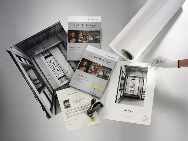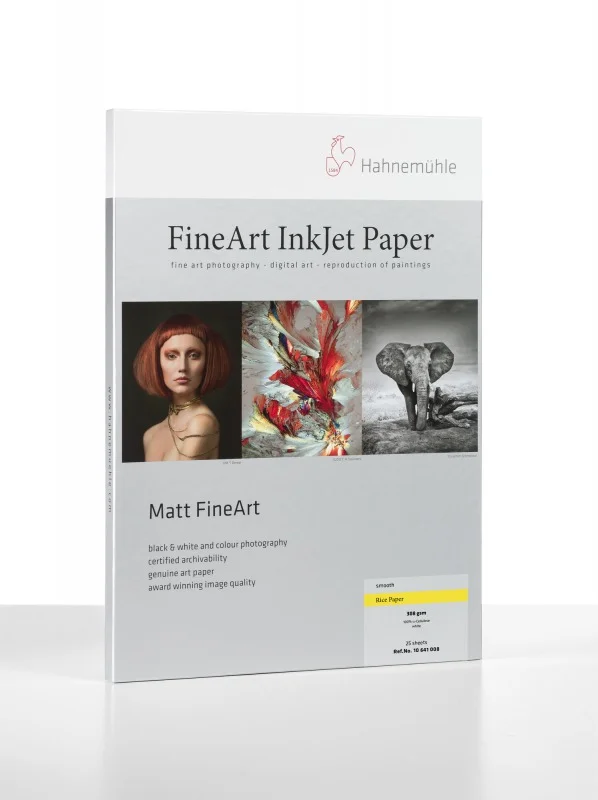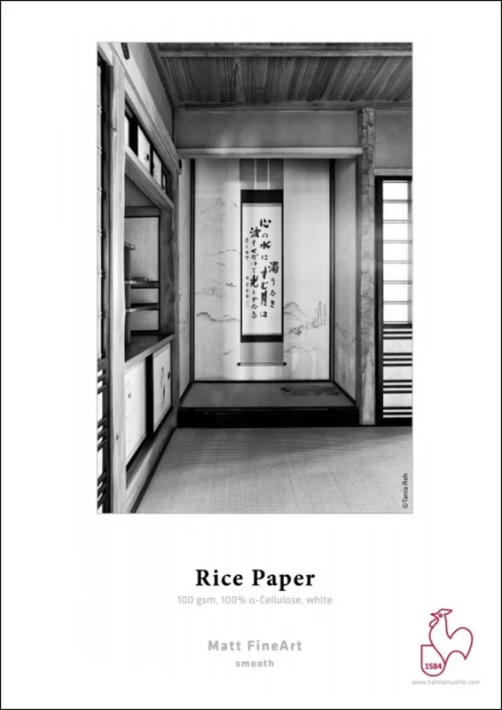 Papier ryżowy - biały, 100% α-celulozy o wykończeniu matowym. Spełnia archiwalne standardy branżowe dotyczące gęstości, gamy kolorów, stopniowania kolorów i ostrość obrazu przy zachowaniu wrażenia matowego papieru artystycznego. Kompatybilny z drukiem pigmentowym oraz wodnym